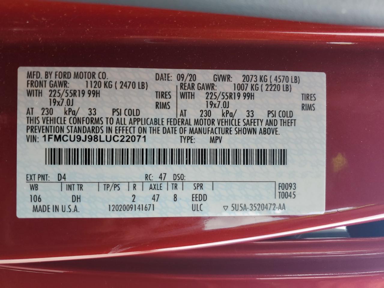 / Nasze realizacje / 2020 FORD ESCAPE TITANIUM